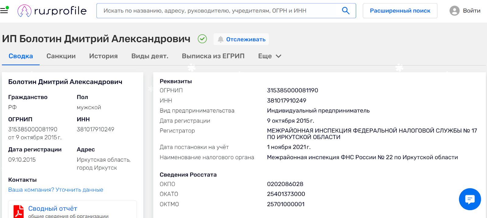 Организационно проект оформлен через ИП Болотина Дмитрия Александровича. Предприниматель зарегистрирован в России с 2015 г., основной вид деятельности — дополнительное образование детей и взрослых.