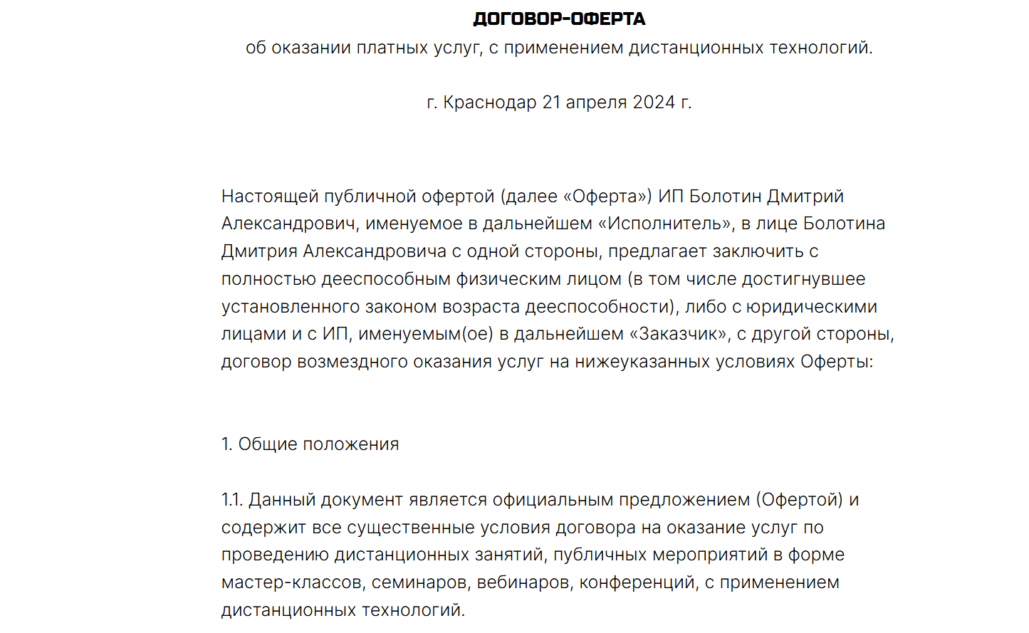 На сайте клуба klub1000000krd ru опубликована публичная оферта, договор, политика конфиденциальности, реквизиты исполнителя и условия возвратов. Документы объемные, юридически насыщенные и во многом защищают именно исполнителя.