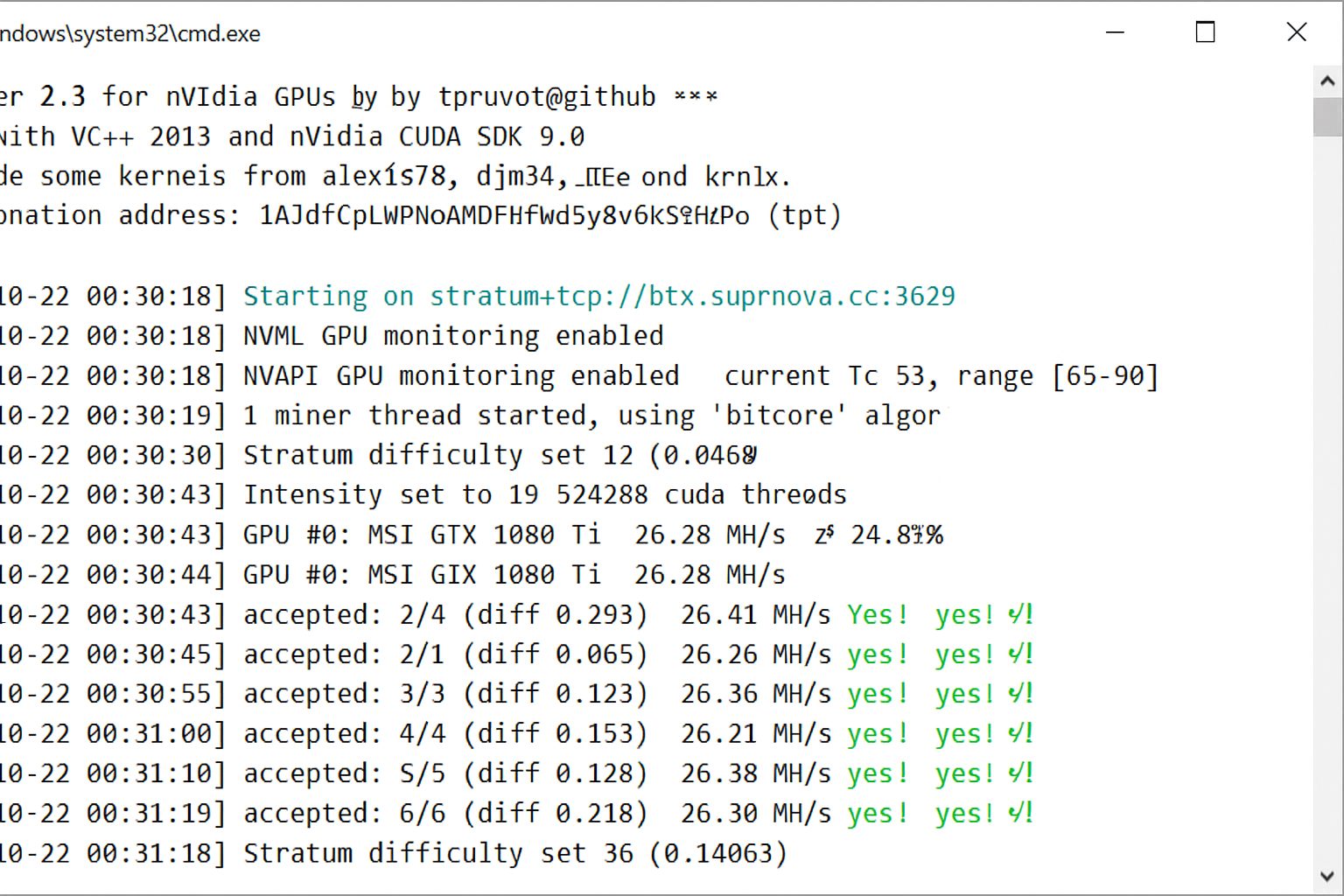 Сборка компилировалась для CUDA 10; для CUDA 9 доступны другие релизы. Удачного майнинга и стабильного хешрейта!