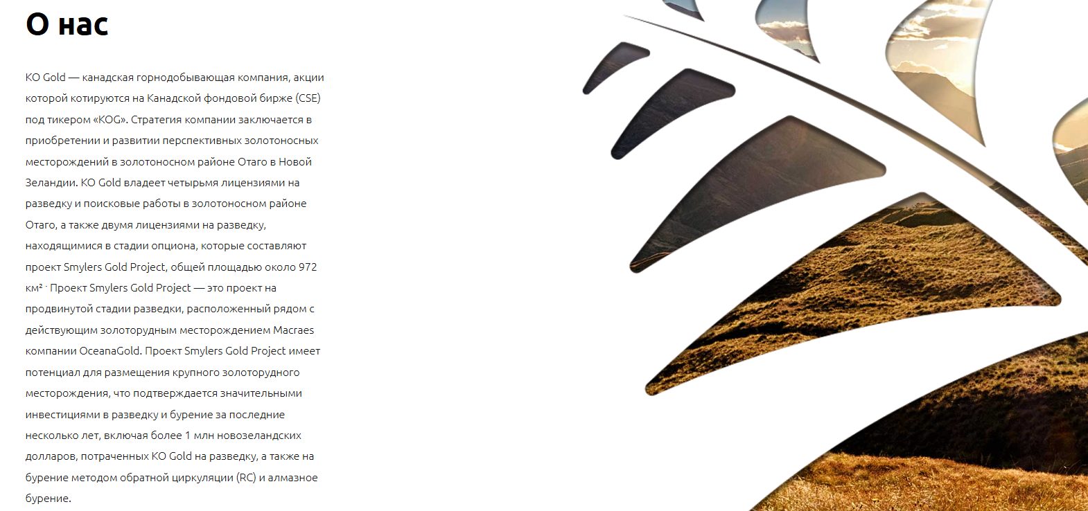 Домен kogoldnz com появился 24 июня 2020 года. На главной странице – информация о геологоразведке и инвестициях в акции. Ресурс выглядит как корпоративный. И не похоже, что Kogold – это биржа.