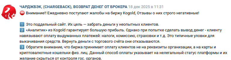 В декабре 2025 появились жалобы на crypto Kogold. Кто-то использует название для обмана клиентов. Предлагают вложиться в или торговать на платформе с этим названием.