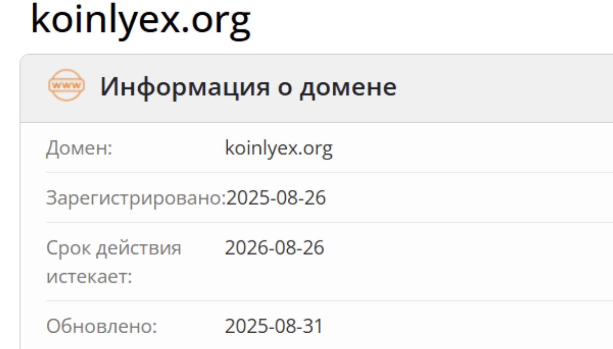 Образ надежной и прозрачной платформы для заработка рушится, стоит только проверить реальный возраст проекта «Кракен Экс». Данный сервис фактически зарегистрирован на домене KoinlyEx совсем недавно: сайт запущен в работу летом 2025 года. Ни о каком четырехлетнем присутствии проекта на рынке речи быть не может.