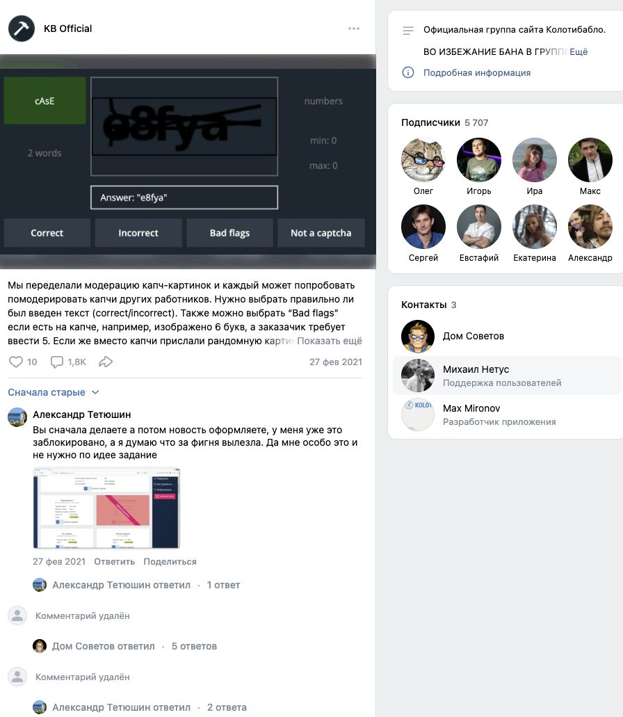 На страницу KB Official во «ВКонтакте», на 31 декабря 2025-го года, подписаны 5,7 тысяч пользователей. Последние публикации на нее были выложены еще в 2021-ом году.