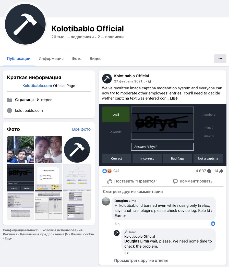 Страница Kolotibablo Official на Facebook — это аккаунт с 26 тысячами подписчиков. Она тоже была заброшена еще в 2021-ом году. Последняя публикация собрала 241 лайк и более 4,5 тысяч комментариев.