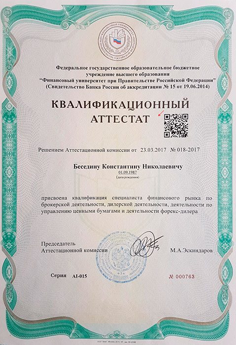 Профессиональные направления Константина Беседина – это якобы финансовое консультирование и управление инвестиционными портфелями. Открытые источники утверждают следующие факты об эксперте: