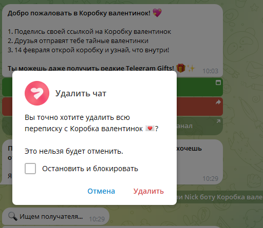 как работает коробка валентинок в тг