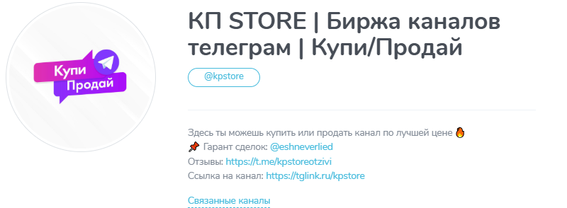 Основная информация о «КП store | Биржа каналов телеграм | Купи/Продай»