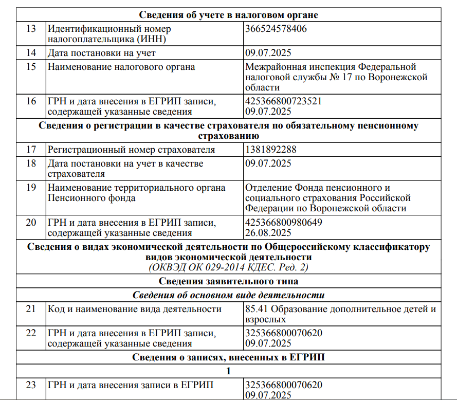 Проверкой установлено, что номер принадлежит индивидуальному предпринимателю Гулиевой Кристине Руслановне, которая начала свою деятельность (дополнительное образование для детей и взрослых) 9 июля 2025 года.