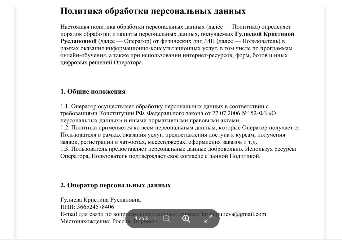 В облачном хранилище удалось найти Политику обработки персональных данных. В нем указан ИНН Оператора — 366524578406.