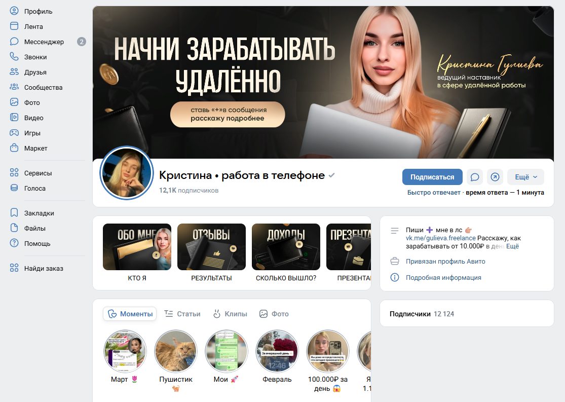 Кристина Гулиева и ее удаленная работа отзывы собирает в основном на странице самого проекта. Публично проект продвигается через сообщество ВКонтакте «Кристина — работа в телефоне», где команда предлагают писать в личные сообщения и обещают заработок от 10 000 рублей в день с телефона. В том же канале есть заявления о росте от пособий до 500 000 рублей в месяц. Но можно ли действительно заработать по инструкциям Гулиевой, стоит ли доверять ее обещаниям, читайте в данной статье.