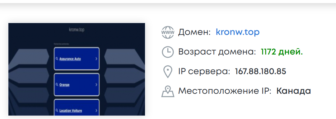 Проверка официального сайта показала, что Kronw Top работает около трех лет. Сам сервер IP находится на территории Канады. По факту домен много раз продавался и менял владельцев. Это означает, что говорить о хорошей репутации и доверии к проекту не приходится.