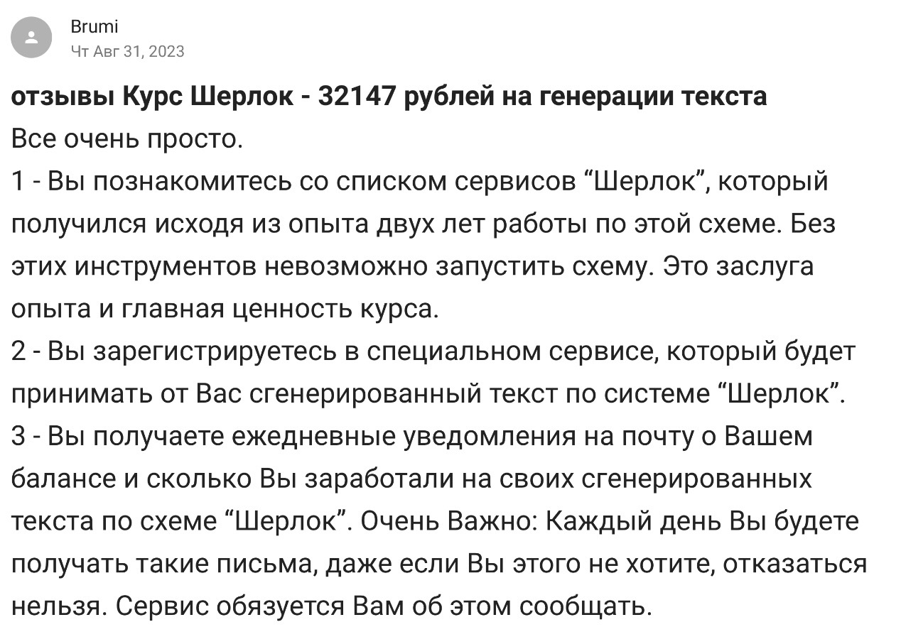 Обзор курса «Шерлок Холмс Точно Рабочая Схема»: реально ли заработать на текстах 32147 ₽ в неделю — отзывы пользователей о возможном скаме