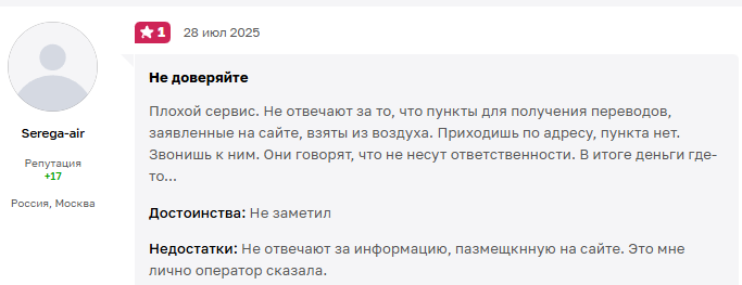 В отзывах о Kwikpay ru есть и негатив. Встречаются жалобы на высокие комиссии (например, за SMS-информирование), трудности с возвратом средств в случае отмены операции, задержки при обработке крупных сумм, не всегда корректную работу партнерских офисов.