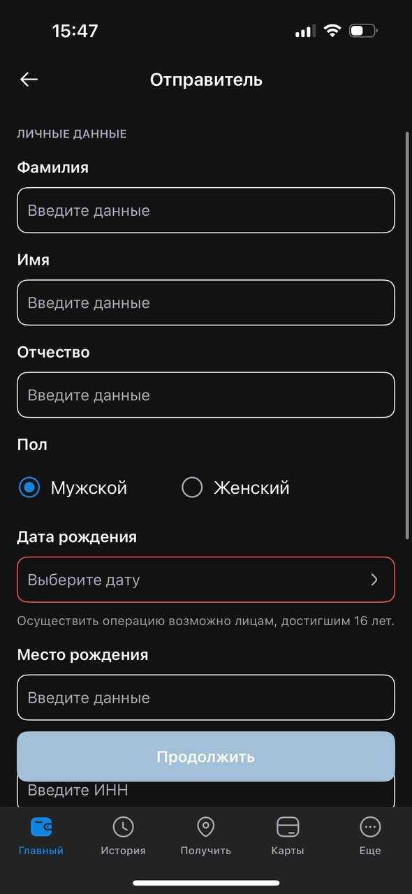 Все этапы сопровождаются подсказками. Для получения денежных переводов нужно ввести свои реквизиты и дождаться совершения платежа. Если выбран способ получения в офисах партнеров, то потребуется паспорт и контрольный номер перевода (КНП) — уникальный код транзакции.