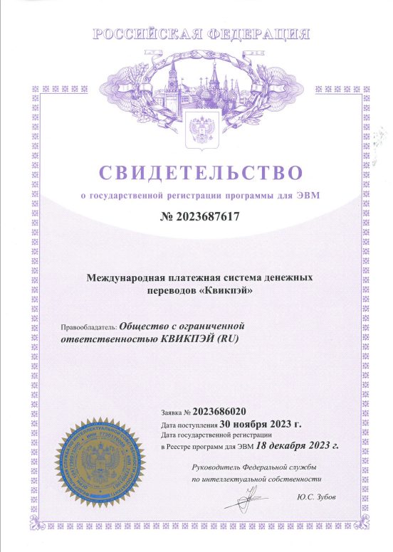 У приложения платежного сервиса также есть свидетельство о государственной регистрации программы для ЭВМ, оформленное в 2023 году.