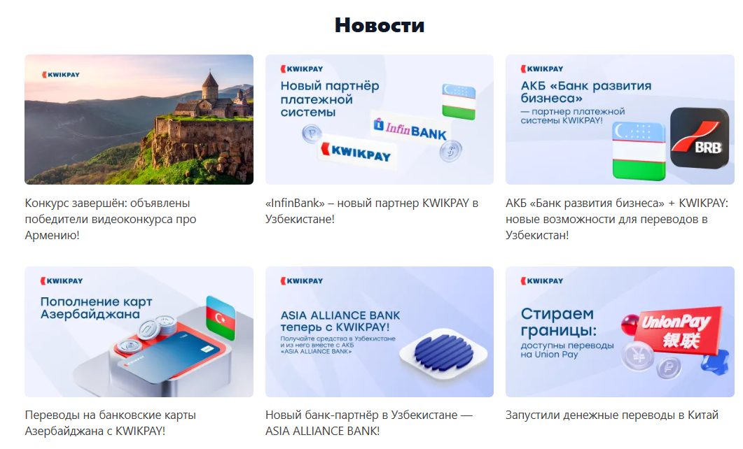 Также есть новостной раздел. Контент в нем более полезный, поскольку рассказывает о новых партнерах системы, о запуске денежных переводов в Китай.