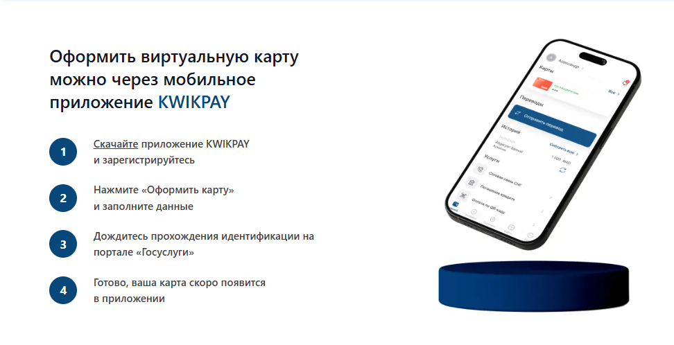 Поскольку карта виртуальная, не нужно ехать в офис или дожидаться курьера, чтобы ее забрать. Достаточно лишь оформить ее в мобильном приложении, а также пройти идентификацию на Госуслугах.