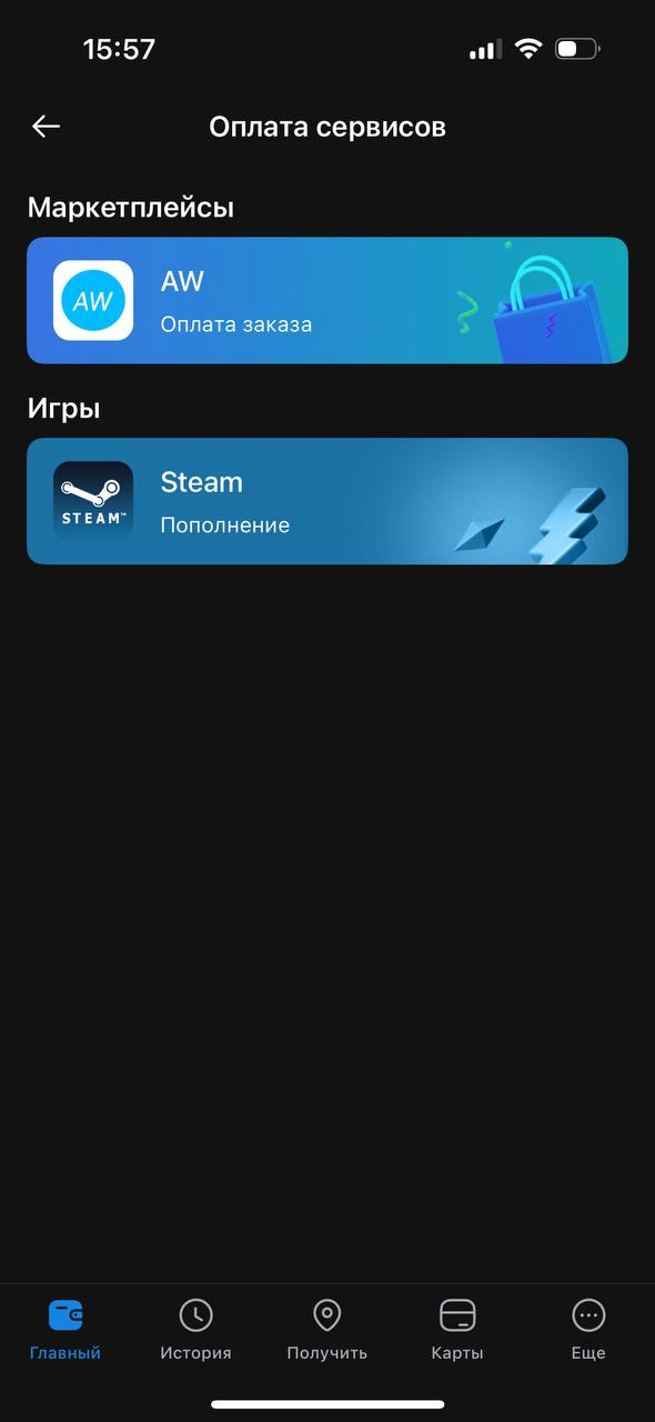 • Возможность оплачивать онлайн-сервисы без комиссии, например AWS и Steam;