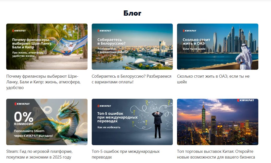 На Kwik pay ru есть собственный блог. Там регулярно публикуют различные статьи, обзоры, а также рекламу смежных продуктов системы.
