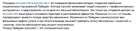 Отзывы о крипто брокере Lai Wur с обзором сайтов Laiwuren Net и Info