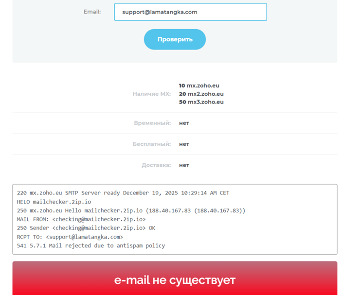 На сайте обещают, что клиентов сопровождают компетентные специалисты, которые работают быстро и четко. У брокера «Лама Тан Онлайн» есть служба поддержки – support@lamatangka com. На почту рекомендуют отправлять свои вопросы и предложения. Но проверка показала, что этого адреса не существует.