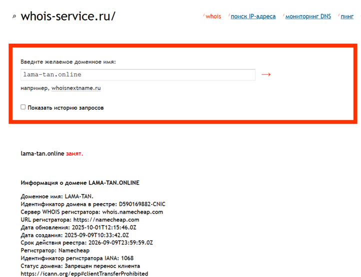 На сайте написано, что брокерская компания Lamatangka ведет длительную работу. На самом деле доменное имя зарегистрировано в 2025 году. Обман насчет срока работы – еще один повод задуматься о надежности площадки. Проверка показала, что доменный адрес брокерской компании продлен до 09.09.2026 г.