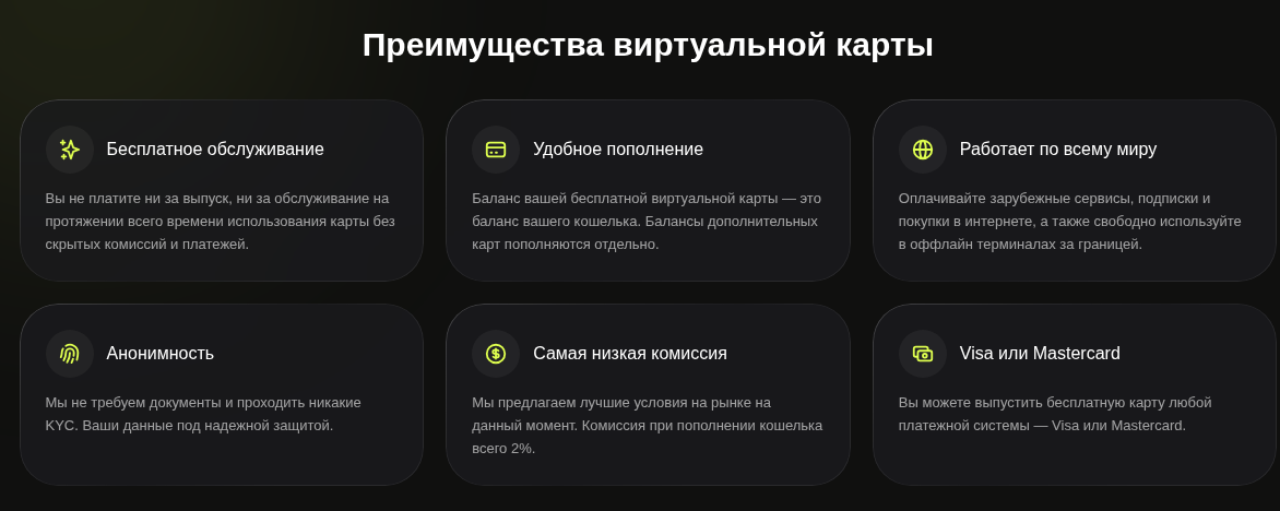 1. Виртуальные карты Visa и Mastercard выпускаются бесплатно, поддерживают Apple Pay и Google Pay.