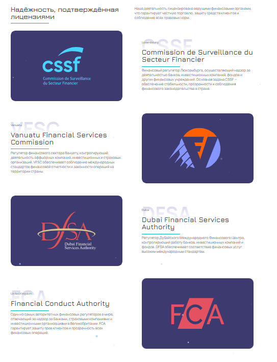 Среди доступных классов активов указаны основные и экзотические валютные пары на рынке Форекс, популярные криптовалюты, акции международных компаний и другие инструменты. Все активы якобы доступны с одного торгового счета в зависимости от типа аккаунта.