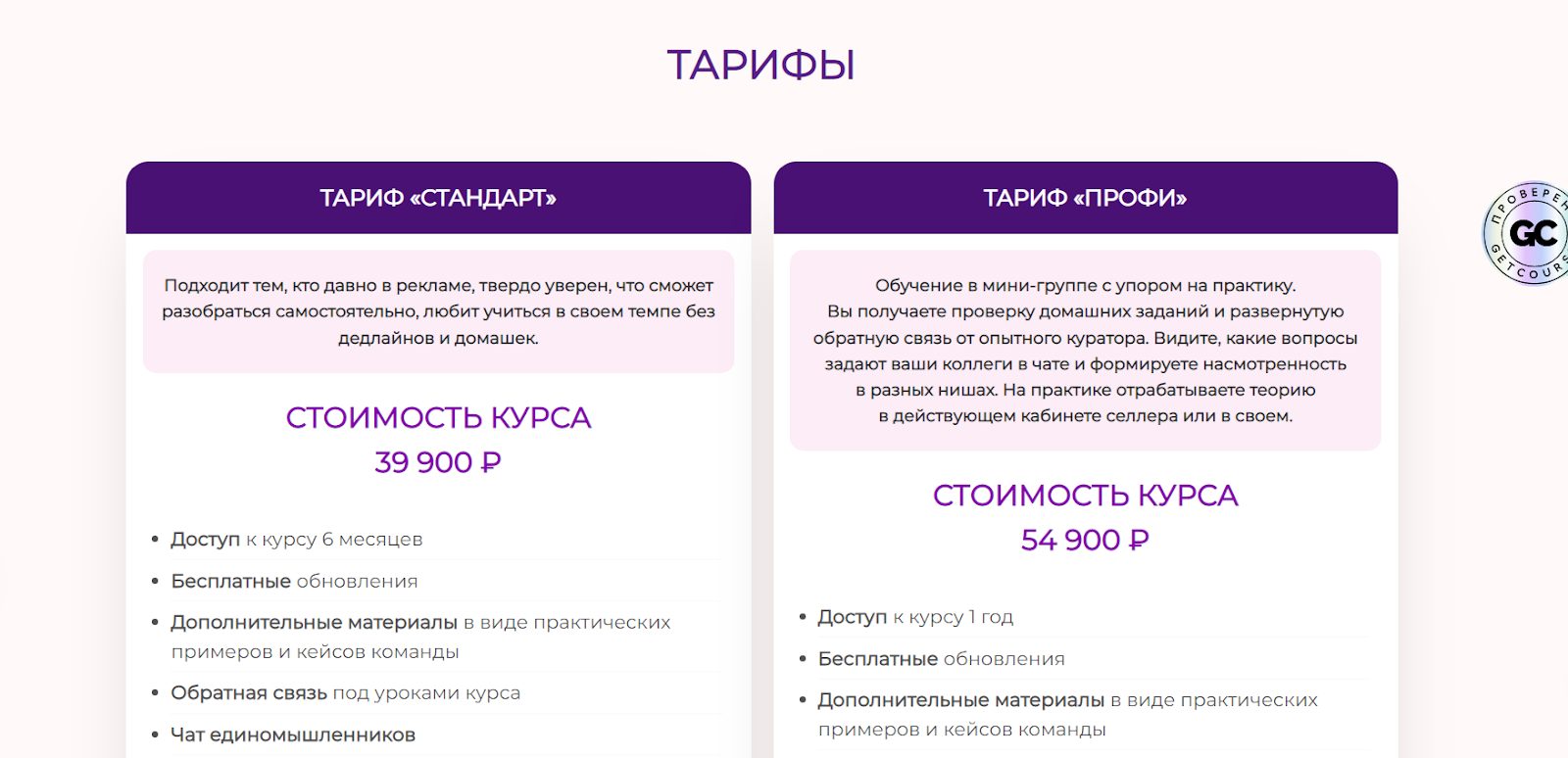- “Профи” — продается за 54 900 р. Доступ на год, предложен сертификат, стажировка;