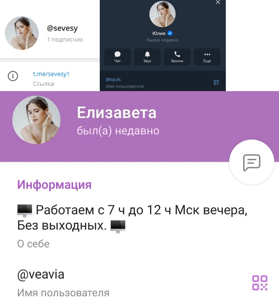 Мы сделали поиск по фотографии трейдера и увидели, что такая же аватарка стоит еще на нескольких страничках в Телеграме. Практически везде девушка представляется финансистом Елизаветой, но где-то она не указывает имя, а использует название проекта.