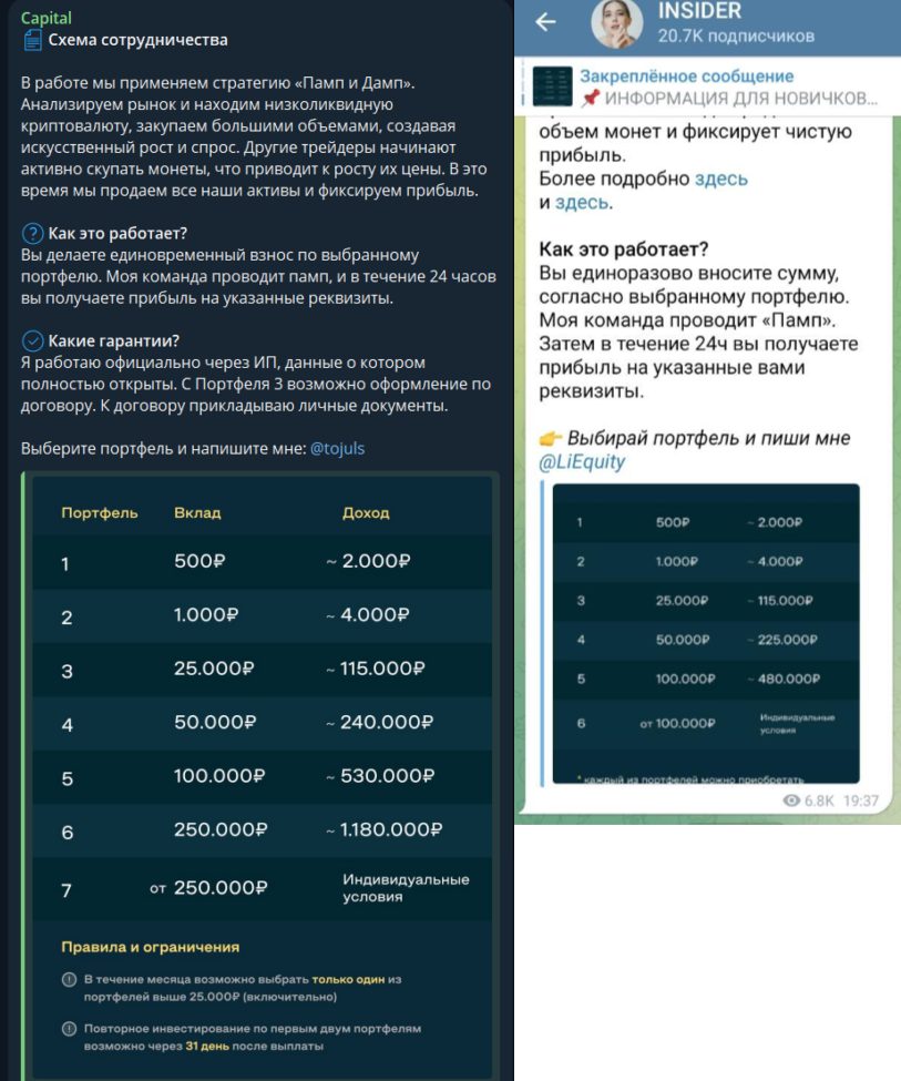 Блогер со своими сотрудниками проводит анализ рынка, выискивает низколиквидную криптовалюту и закупает ее в большом объеме. Дальше делается искусственный рост и интерес к этой монете. В этот период команда запускает продажи всех накоплений и получает свой доход.