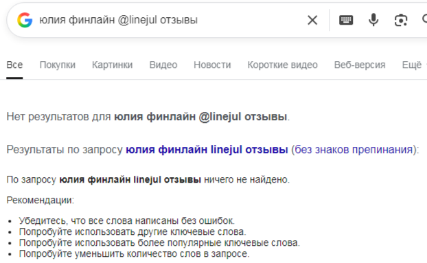 По итогам нашего расследования мы пришли к выводу, что с проектом «Финлайн Группа» и персонажем Linejul связываться не нужно. Телеграм-каналы и аккаунт, где стоит аватарка некой Юлии или Елизаветы тоже стоит обходить стороной.
