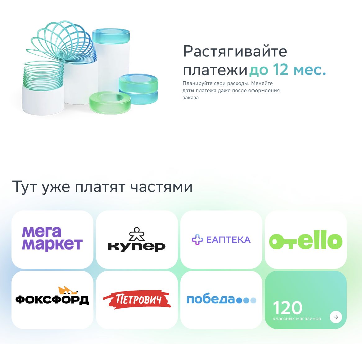 «ПлатиЧастями Ру» — официальный сервис от компании «Сбер». Был запущен в 2022-ом году. Позволяет покупать товары в рассрочку на 2-12 месяцев.