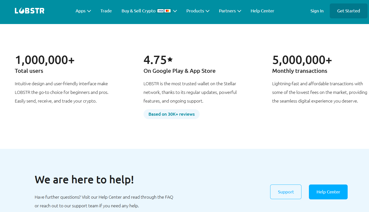 Проект заявляет более 1 млн зарегистрированных пользователей, свыше 5 млн транзакций в месяц и средний рейтинг около 4,7–4,8 в Google Play и App Store LOBSTR Wallet Buy Stellar XLM App на базе десятков тысяч оценок.