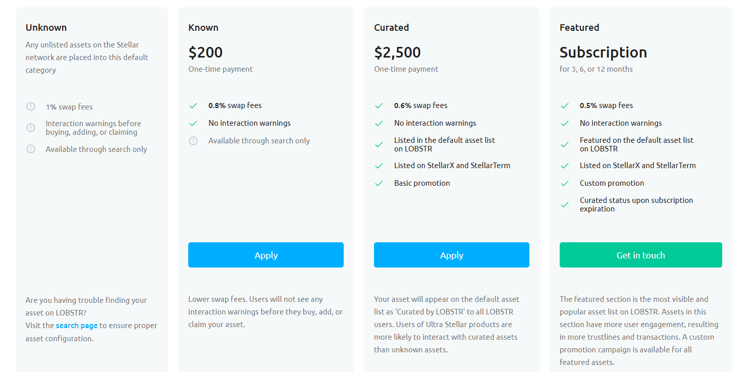 Отдельная статья дохода это листинг и продвижение токенов. Эмитент может заплатить 200 долларов за статус Known или 2 500 долларов за Curated, либо оформить подписку на Featured, чтобы его актив показывался в дефолтных списках без предупреждений.