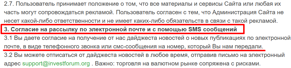 Третий пункт Пользовательского соглашения ясно гласит, что на все указанные клиентом данные он соглашается получать различную рекламу от администрации проекта.