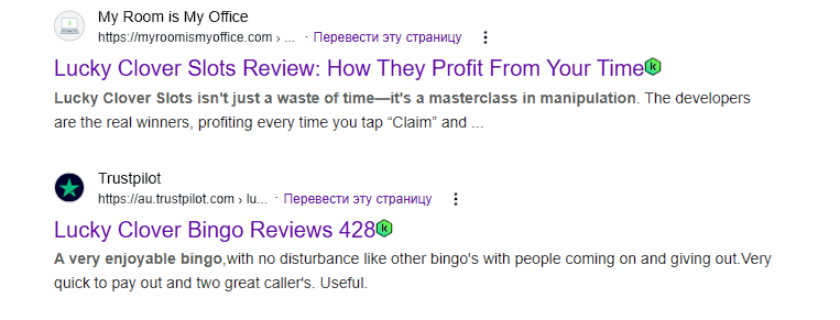 В независимых источниках отзывов об игре Lucky Clover Rush практически нет – в основном пользователи пишут о приложениях с похожими названиями. Вот подтверждающий скрин: