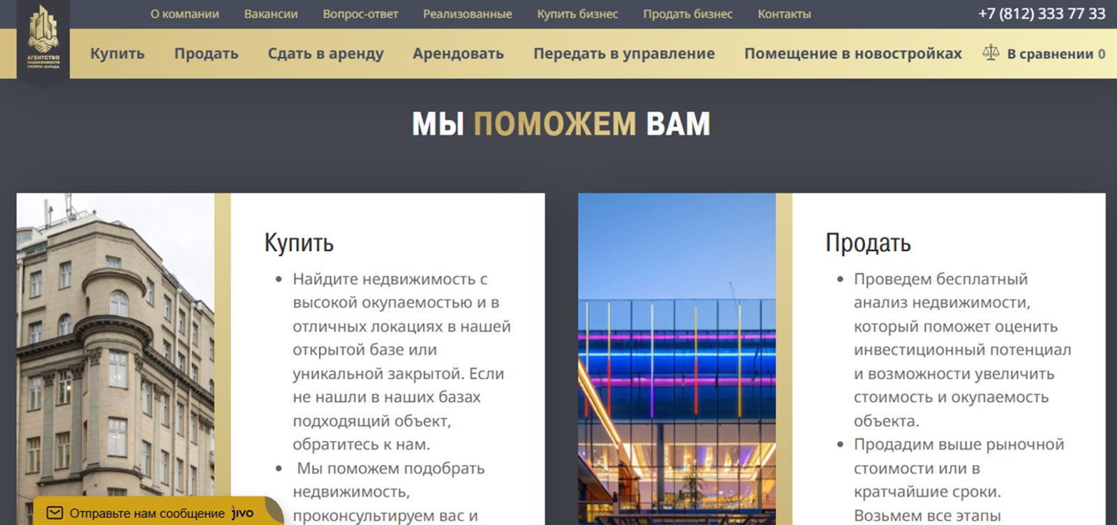 На сайте АН Северо-Запада представлены следующие типы услуг: