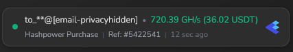 Зато пополнения для покупки мощностей для майнинга осуществляются на неплохие суммы. Вот только если оценить мощности, которые даются за пополнения, то можно понять, что они придуманы наобум. За 720 GH/s пользователь заплатил 36 долларов.