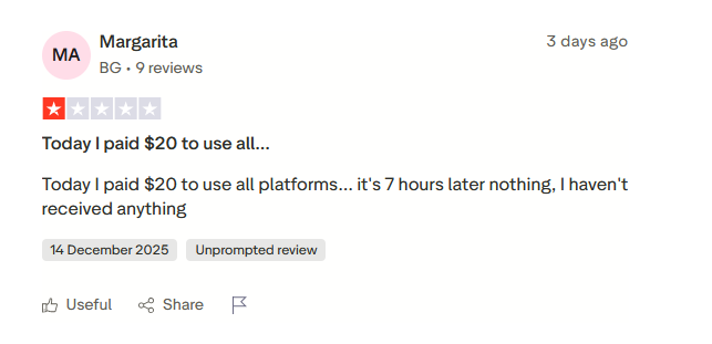 Тем не менее создателями платформы проводится активное спам-продвижение с помощью заказных отзывов на ТрасПилот: