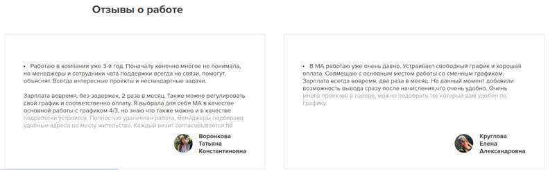 Отзывы о Ma Works Moderation на самом сайте положительные. Понятно, что создатели не станут портить себе репутацию. Эти комментарии являются просто написанным текстом. Они не относятся к настоящим аккаунтам людей. Но под приложением мы нашли оценки реальных пользователей. Многие клиенты сталкиваются с проблемами при регистрации. У некоторых не загружаются файлы с документами. Некая Милана рассказывала, что отношение к пользователям ужасное. Платят мало, даже если человек выкладывается на полную. У кого-то блокируют вывод средств и не платят большие обещанные деньги. В приложении высокая комиссия, а бонусов вообще нет. Пользователи не рекомендуют пользоваться данным сервисом.