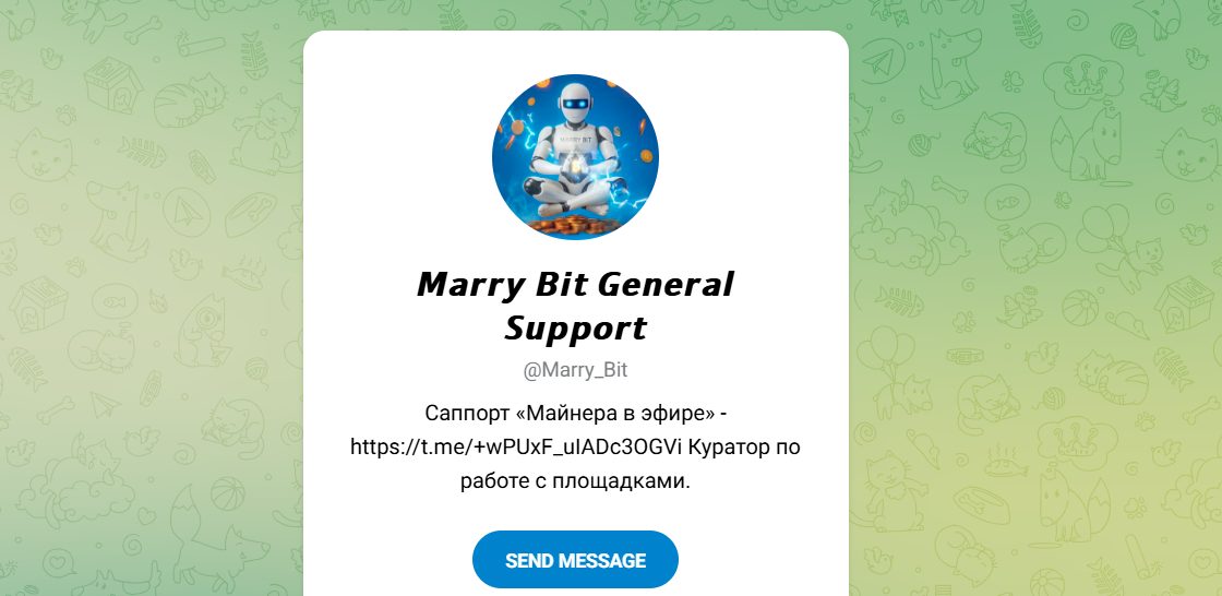 • Отдельный чат службы поддержки Marry Bit.