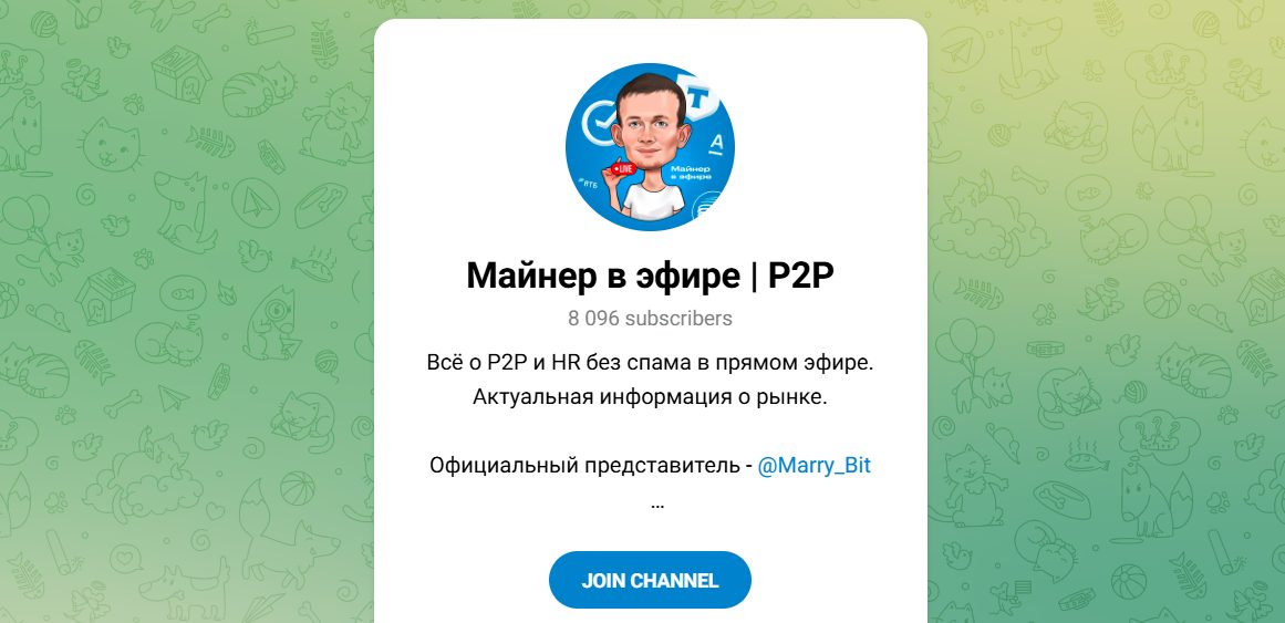 Майнер в Эфире P2P — отзывы о проекте звучат по-разному, а сам канал представляет собой экосистему тг ресурсов, посвященных P2P-торговле, ферме, сушке и внутреннему обучению команд, которые подключаются к их методам и гарант-сервисам.