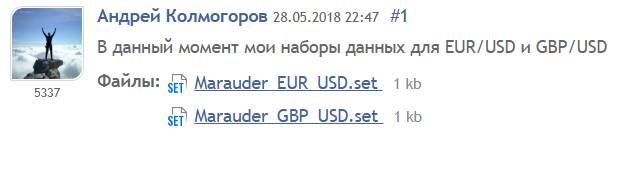 Скачать программу можно после покупки на mql5 com. Файлы появляются в личном кабинете. В комплект Marauder EA MT4 with SetFiles входят готовые настройки для разных пар. Эти файлы лежат в разделе комментариев на странице продукта. Их размещает сам автор.