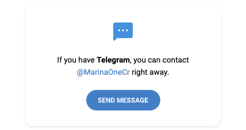 Мы узнали, что в Телеграмм присутствовал персональный аккаунт администратора. Он располагался по адресу marinaonecr.