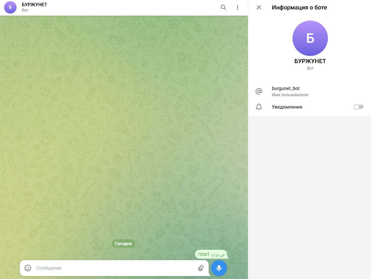 - неработоспособность бота БУРЖУНЕТ;