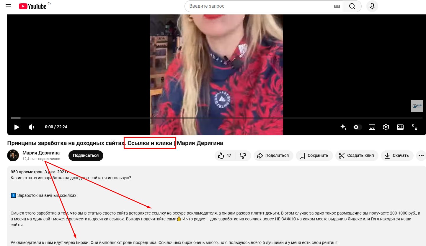 На ютуб канале Derigina выкладывает в первую очередь разные отзывы своих клиентов и познавательные ролики, где делится различными схемами для заработка. Однако все они ограничиваются лишь теорией, а кроме двух последних публикаций, которые вообще являются развлекательными, видео выходили более 2 лет назад. Ютуб канал Марии можно считать заброшенным, нет прироста подписчиков и просмотров.