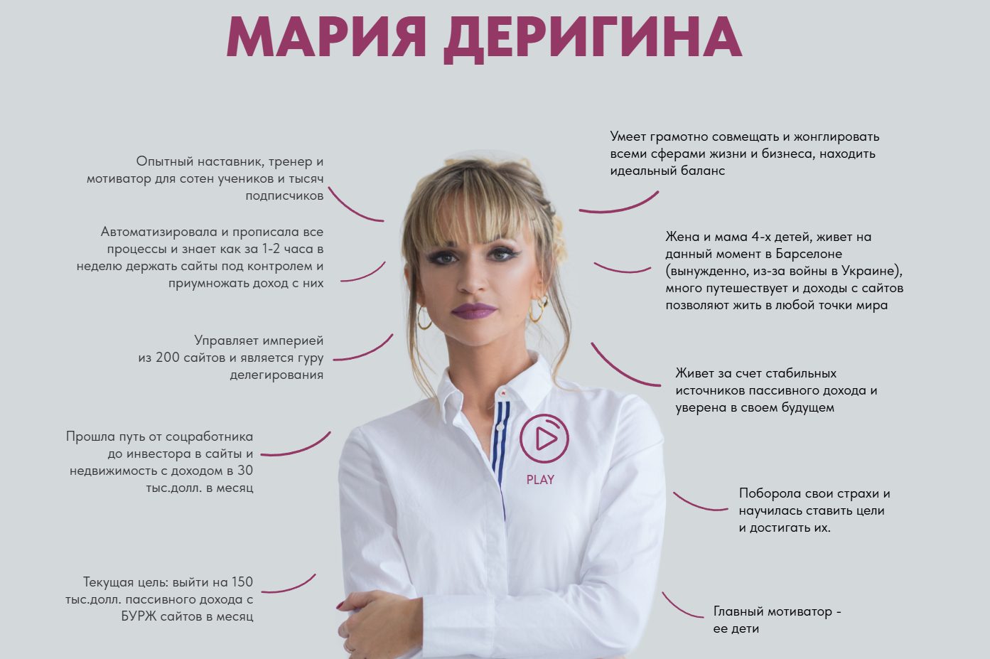Мария Деригина — это основательница онлайн школы по заработку на сайтах, которая также занимается инвестированием в криптовалюту и недвижимость. На некоторых платформах девушка заявляет, что обладает доходом от $30 000 в месяц и управляет 200 сайтами. Пользователям она предлагает скачать свои книги или пройти курсы, чтобы выйти на пассивный доход, автоматизировать все процессы и начать зарабатывать. Но можно ли ей доверять, узнаете в данной статье.