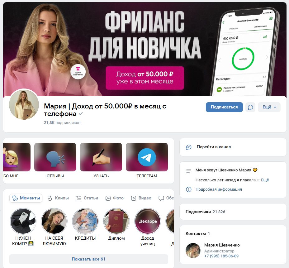 Мария Шевченко заявляет, что зарабатывает миллионы рублей в месяц на фрилансе, используя только телефон. Своим клиентам она предлагает курсы о том, как выйти на заработок от 50 тыс. в месяц. Звучит заманчиво, но мы проверили ее деятельность и нашли много настораживающих фактов, о которых расскажем ниже.