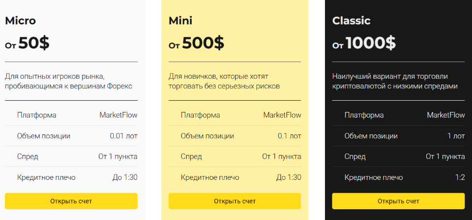 Торговые условия платформы Market Flow